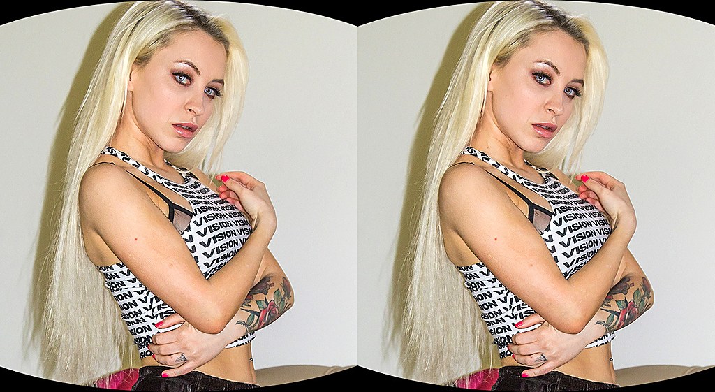 WankzVR scenes are recorded with two separate cameras placed the same distance apart as a humans eyes, each video is shot from a slightly different angle, then delivered to each of your eyes. This creates three dimensional depth, just like in real life.